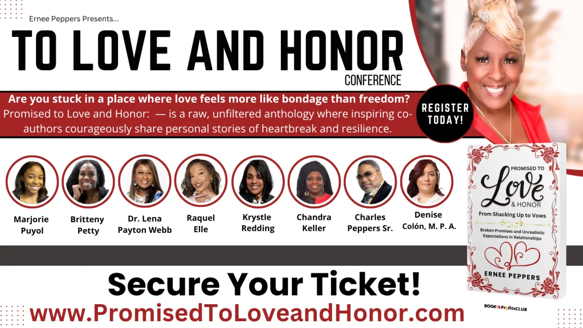 Join us for an inspiring, truth-telling celebration of the new anthology Promised to Love and Honor—presented by Ernee Peppers Presents. This powerful event gathers co-authors, survivors, and advocates to explore healing, self-care, faith, and building relationships rooted in love, honor, and mutual respect.